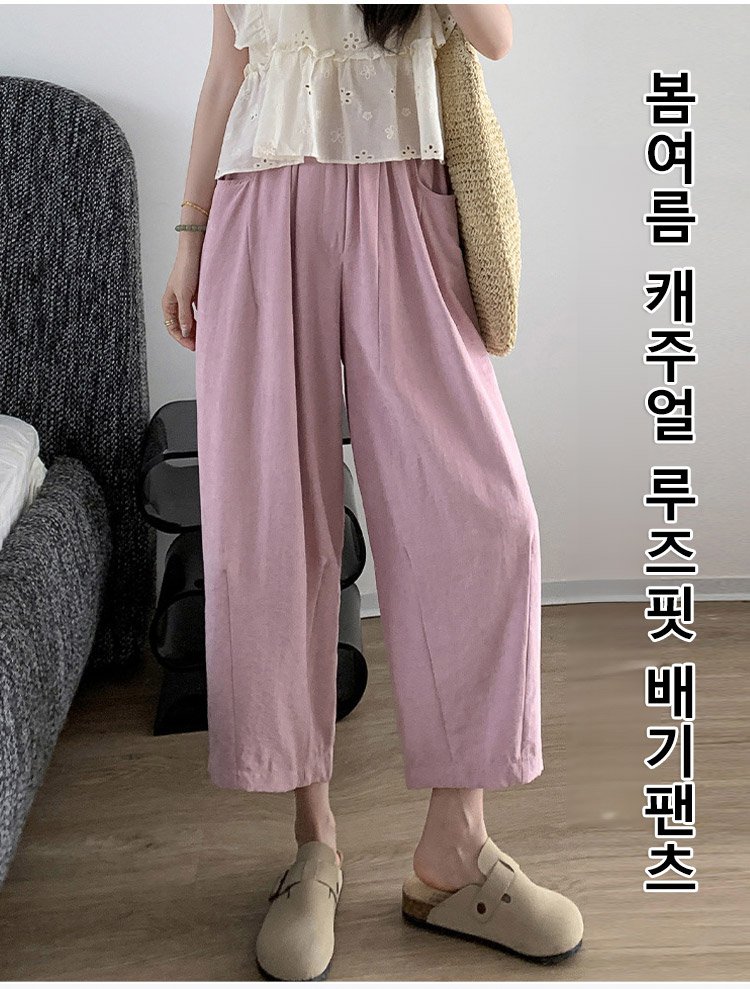 여성용 봄여름 하이웨이스트 루즈핏 배기팬츠